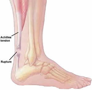 Although the Achilles tendon can withstand great stresses from running and jumping, it is vulnerable to injury. A rupture of the tendon is a tearing and separation of the tendon fibers so that the tendon can no longer perform its normal function. Complete tears of the Achiles Tendon in young active individuals require surgical repair to restore ankle function