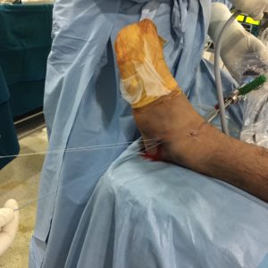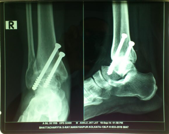 This surgery was earlier done by open methods with a high complication rate. Arthroscopy specialists prefer to do it with arthroscopic techniques, minimizing complications and optimizing the results. With sophisticated arthroscopic techniques we have successfully fused ankles with 5 mm keyholes – even in cases which had 5-6 previous unsuccessful open surgeries and big scars!!