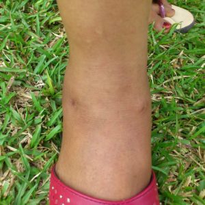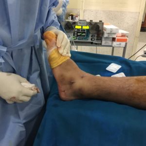 Picture showing small stitches after arthroscopic ankle ligament repair