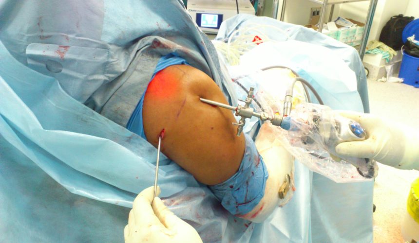 Shoulder Arthroscopy: Arthroscopy, or Minimally Invasive “keyhole” surgery, allows the surgeon to look into the shoulder joint, make an exact diagnosis, and treat the condition with an operation that requires very small skin cuts. We use specially made instruments that fit through the small skin incisions and we visualize the shoulder using a camera. Because this technique disturbs the shoulder joint less than open surgery, the hospital stay is shorter and the recovery smoother than with “open surgery”.